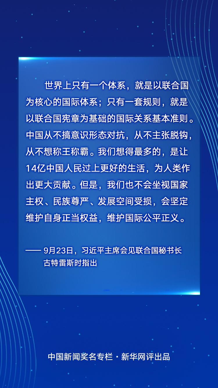 中國是聯合國的堅定支持者。無論國際形勢如何風云變幻,中國始終堅定站在歷史正確的一邊,做世界和平的建設者、全球發(fā)展的貢獻者、國際秩序的維護者,推動聯合國事業(yè)和人類和平發(fā)展事業(yè)不斷開拓前進。中國理念、中國行動,與聯合國所倡導的多邊主義等原則高度契合,與和平、發(fā)展、合作、共贏的時代潮流相適應。在第75屆聯合國大會期間,中國就人類將面對什么樣的世界、世界需要什么樣的聯合國等重大問題闡述中國立場、提出中國方案,用中國智慧、中國行動為聯合國發(fā)展、世界和平與繁榮作出新的中國貢獻。中國期待同各國一道,建設一個強有力的聯合國,推動構建人類命運共同體,讓14億中國人民過上更好的生活,為人類作出更大貢獻。