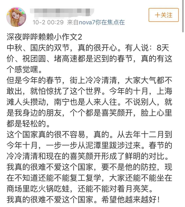 正如網(wǎng)友所說(shuō):“這個(gè)國(guó)家,真的很不容易?!钡舱且?yàn)樵?jīng)的艱難,才讓所有經(jīng)歷過(guò)那些驚惶、擔(dān)憂、迷茫的人,在重回平靜的生活后,會(huì)倍感山川清秀、歲月溫柔,那之前被按下暫停鍵的團(tuán)圓飯、那口早就該喝下的老燒酒、還有那個(gè)欠下好久的擁抱,都會(huì)帶給人更強(qiáng)烈的幸福。
