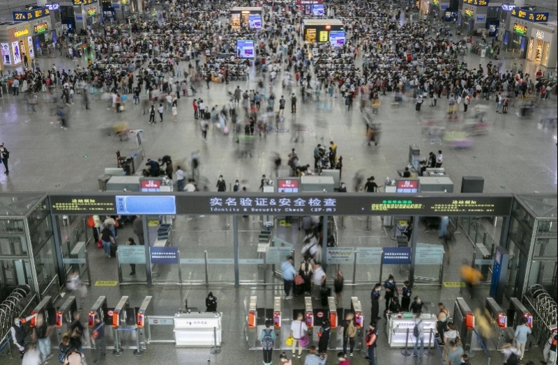 10月1日長三角鐵路發(fā)送旅客309.9萬人次,預計2日發(fā)送旅客248萬人次,其中上海鐵路全站2日預計發(fā)送旅客45.5萬人次 圖源 新華社