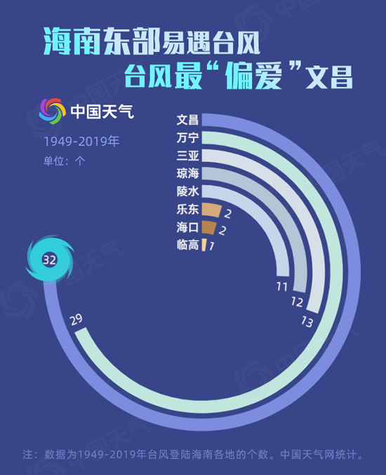 從登陸地點來說,海南東部沿海最易遭臺風襲擊,像是文昌、萬寧等地均為臺風登陸的集中地;其次,海南南部沿海地區(qū)也是臺風登陸的密集區(qū),比如三亞、陵水等地也經(jīng)常有臺風“上岸”。