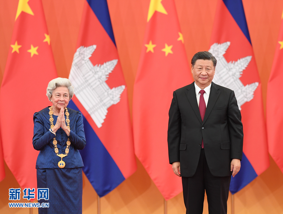 習(xí)近平強(qiáng)調(diào),這枚沉甸甸的“友誼勛章”,代表了中國(guó)人民對(duì)莫尼列太后的崇敬之情和對(duì)柬埔寨人民的深厚情誼,也象征著中柬兩國(guó)親密無(wú)間的友好感情。祝愿中柬兩國(guó)繁榮昌盛、人民幸福安康。祝愿兩國(guó)人民友誼地久天長(zhǎng)。