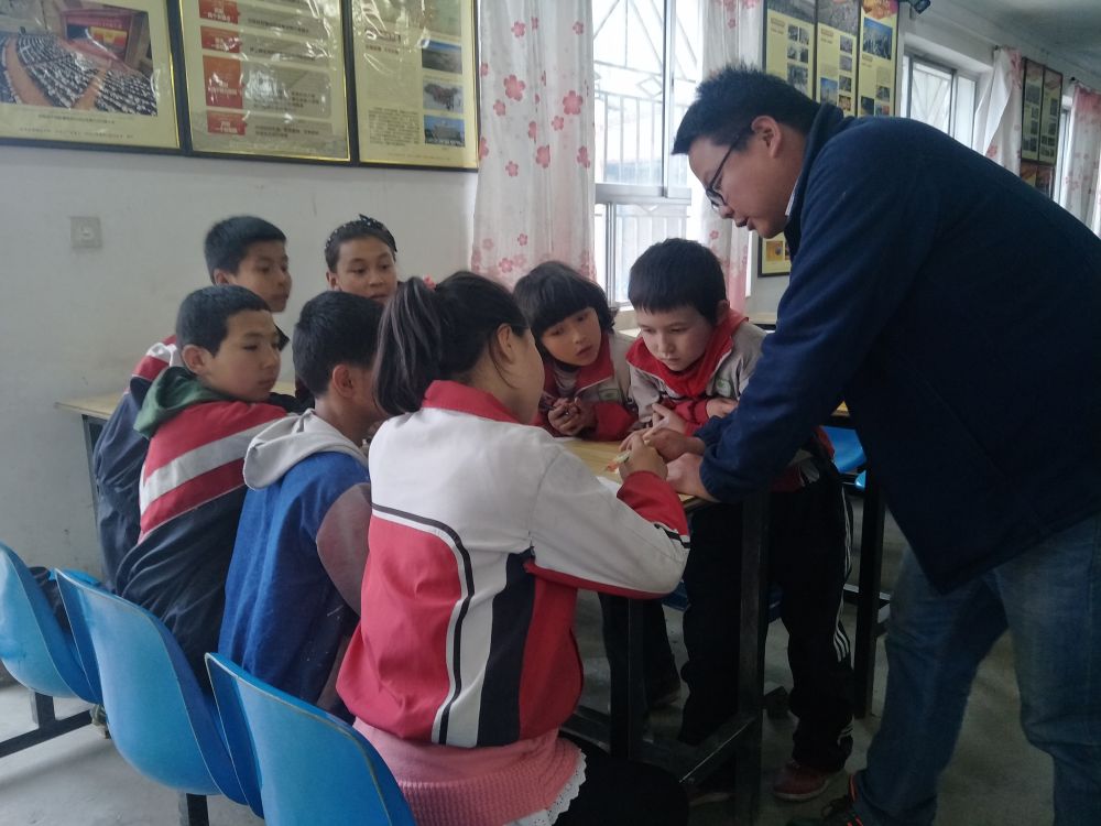 2017年4月,呼延瑋輔導(dǎo)蘭干村的孩子們學(xué)習(xí)語文。(采訪對(duì)象供圖)