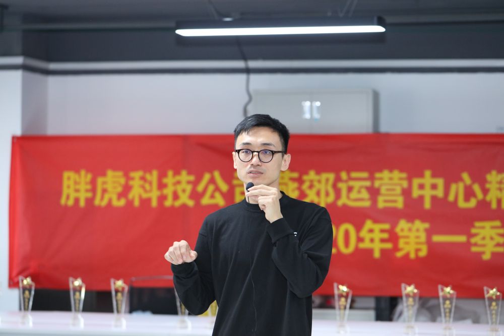 2020年4月,馬成在胖虎燕郊運(yùn)營中心第一季度精英員工表彰大會(huì)上發(fā)言。(采訪對(duì)象供圖)