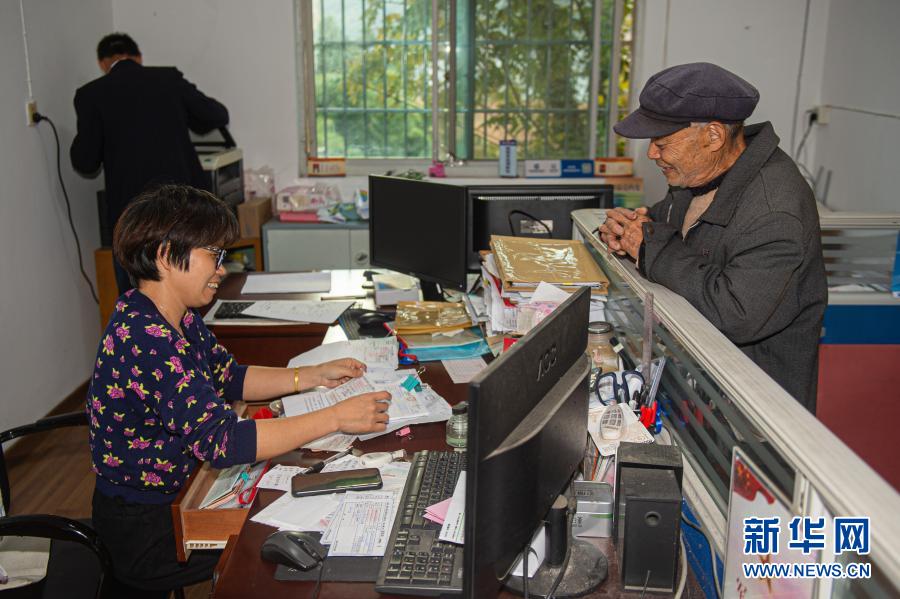 11月17日,大陳村村民在大陳村便民服務(wù)中心咨詢社保相關(guān)信息。新華社發(fā)(江漢 攝)