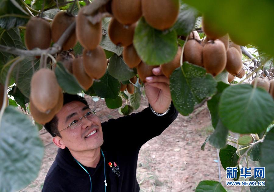 田昕在牛橫嶺村果木種植基地查看獼猴桃生長情況(10月12日攝)。新華社記者 李嘉南 攝