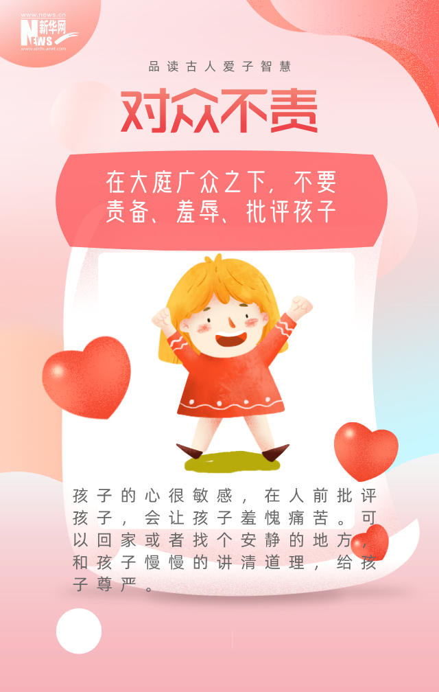 如何呵護孩子幼小的心靈,給他們一個健康的成長環(huán)境?古時候有非常多的教育理念,蘊含了深刻的心理學和教育學原理。其中,著名的愛子“七不責”成為經(jīng)典教育理念:“卑幼有過,慎其所以責讓之者。對眾不責,愧悔不責,暮夜不責,正飲食不責,正歡慶不責,正悲憂不責,疾病不責?!薄=裉焓鞘澜鐑和?,一起品讀古人的愛子智慧。