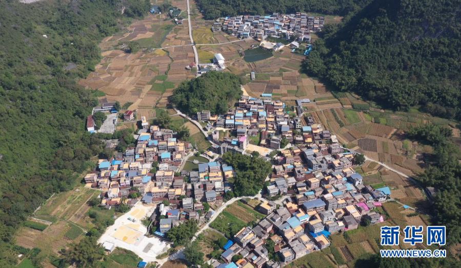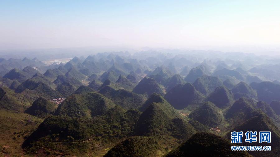 這是11月11日拍攝的廣西隆安縣群山(無(wú)人機(jī)照片)。新華社記者 楊馳 攝