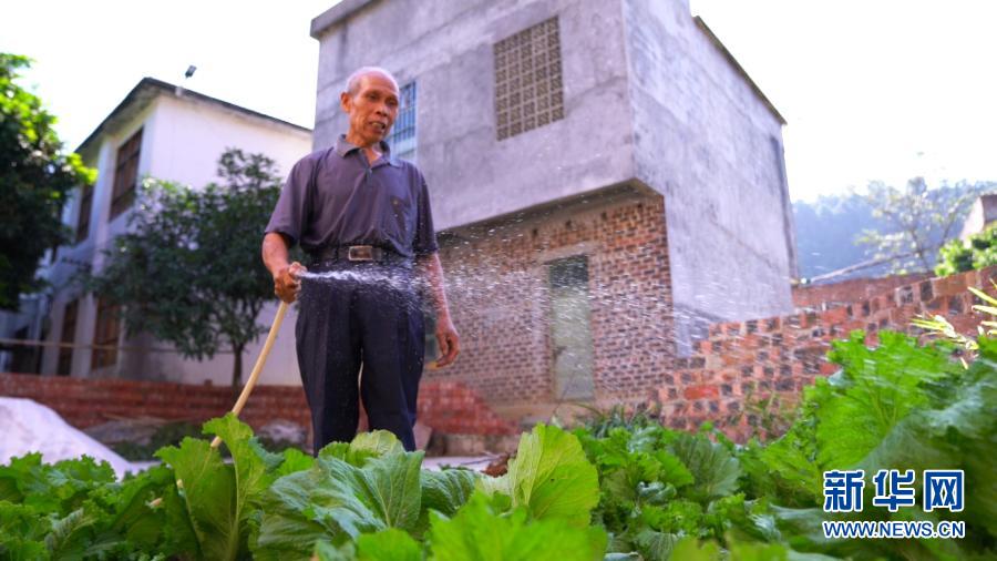 廣西隆安縣實(shí)施跨區(qū)域集中連片供水工程后,一名隴選村村民用自來(lái)水給菜地澆水(11月12日攝)。新華社記者 楊馳 攝