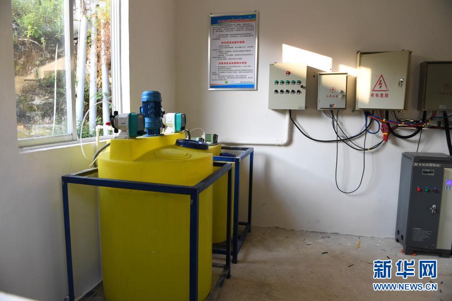 這是2019年10月16日拍攝的廣西隆安縣南圩鎮(zhèn)愛(ài)華村人飲工程的凈水設(shè)備。新華社記者 曹祎銘 攝