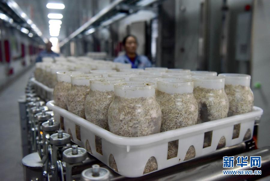 在自動化注射液體菌種后,一排排內(nèi)部裝滿培養(yǎng)基的透明塑料瓶,通過空中傳輸帶,被送進能容納5萬瓶的出菇房,經(jīng)自動抬升被整整齊齊地擺進10層貨架……這是記者在駐馬店市泌陽縣鮮菇坊生物科技有限公司看到的一幕。
