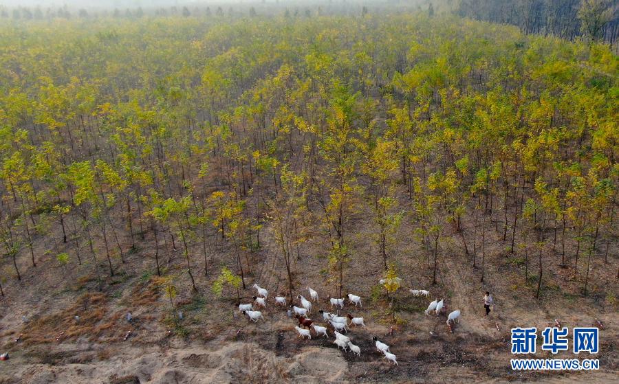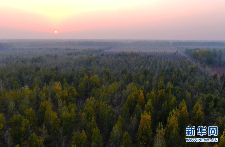 這是11月6日在河南省商丘市民權(quán)縣拍攝的民權(quán)林場(chǎng)(無(wú)人機(jī)照片)。新華社記者 郝源 攝