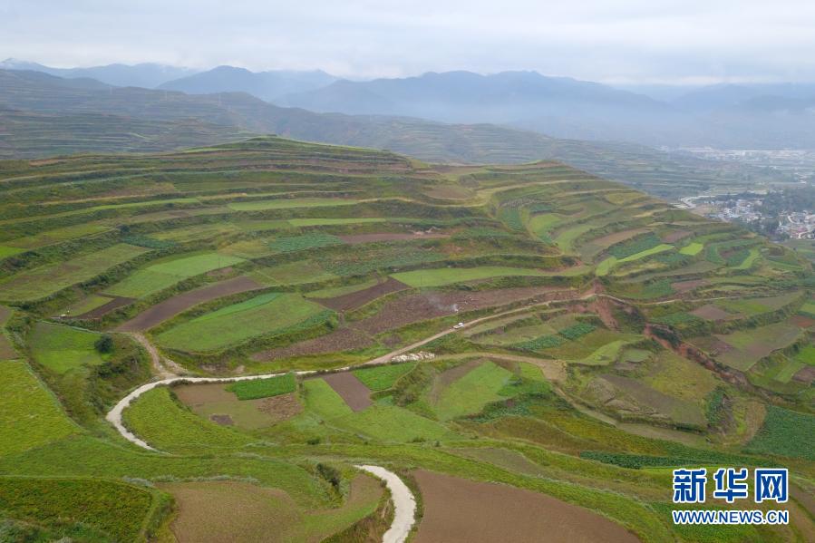 這是9月18日拍攝的宕昌縣拉路梁中藥材標(biāo)準(zhǔn)化種植示范基地(無(wú)人機(jī)照片)。新華社記者 范培珅 攝