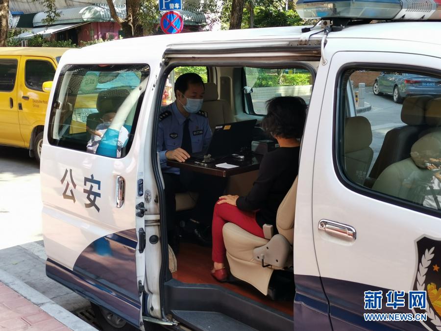 廣州公安的愛心服務車為行動不便的市民提供上門服務(10月27日攝)。新華社發(fā)(廣州市公安局供圖)
