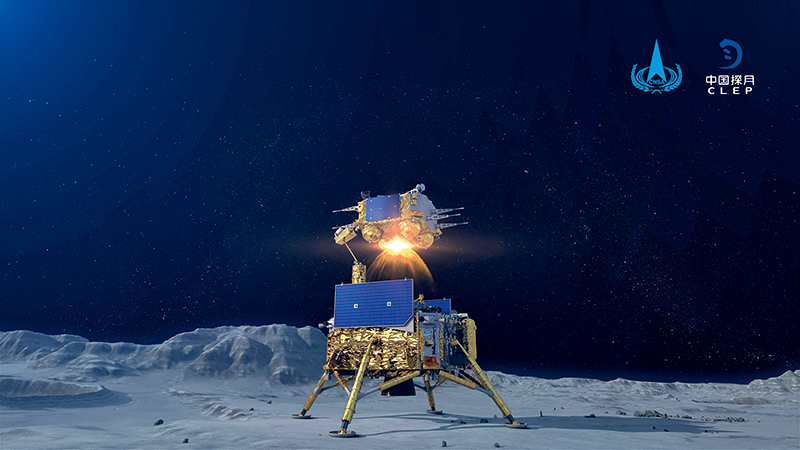 12月3日23時10分,嫦娥五號上升器月面點火,3000 牛發(fā)動機工作約6 分鐘后,順利將攜帶月壤的上升器送入到預定環(huán)月軌道,成功實現我國首次地外天體起飛。這是嫦娥五號上升器月面點火瞬間模擬 圖國家航天局供圖