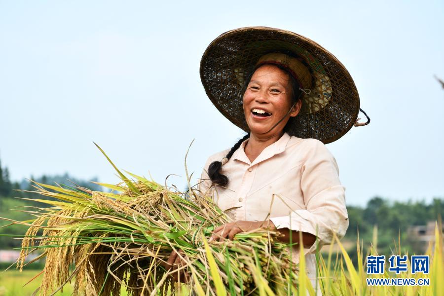 貴州省天柱縣高釀鎮(zhèn)上花村的農(nóng)民在收獲水稻(9月2日攝)。