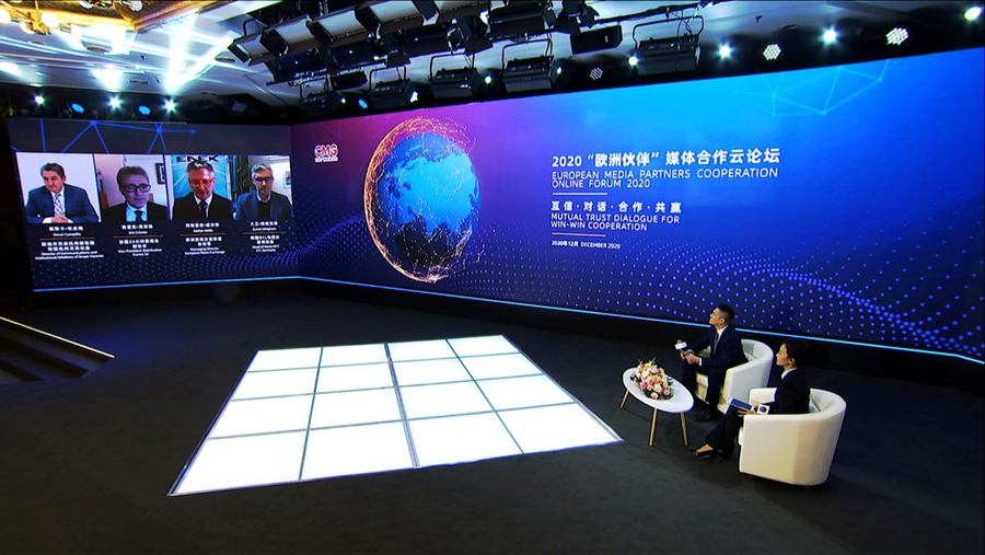 12月10日,中央廣播電視總臺以視頻連線的方式舉辦2020“歐洲伙伴”媒體合作云論壇。中宣部副部長、中央廣播電視總臺臺長、總編輯慎海雄出席并發(fā)表致辭,強(qiáng)調(diào)堅(jiān)持多邊主義,加強(qiáng)對話交流,構(gòu)建中歐媒體伙伴關(guān)系。中央廣播電視總臺相關(guān)代表與來自歐洲地區(qū)16個國家25家媒體機(jī)構(gòu)的28名與會代表圍繞“互信·對話·合作·共贏”主題,相聚云端展開對話,共同發(fā)布《加強(qiáng)媒體合作聯(lián)合聲明》,積極推動中歐媒體加強(qiáng)合作、同舟共濟(jì)、團(tuán)結(jié)抗疫,提振國際社會信心。