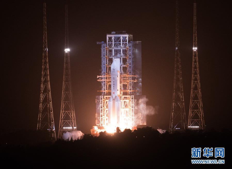 11月24日4時(shí)30分,我國在中國文昌航天發(fā)射場,用長征五號遙五運(yùn)載火箭成功發(fā)射探月工程嫦娥五號探測器,火箭飛行約2200秒后,順利將探測器送入預(yù)定軌道,開啟我國首次地外天體采樣返回之旅。這是長征五號遙五運(yùn)載火箭發(fā)射。新華社記者金立旺攝
