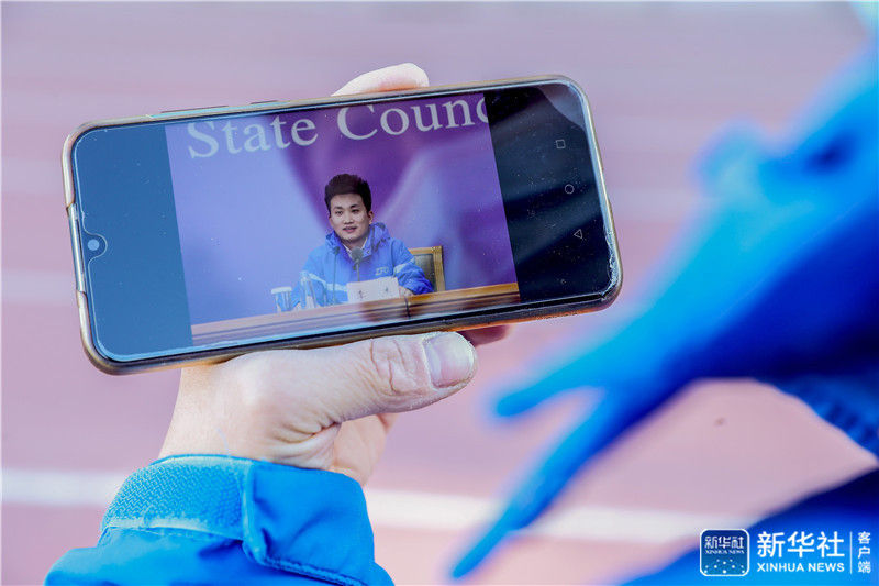 12月16日,李杰在展示他在參加國(guó)務(wù)院聯(lián)防聯(lián)控機(jī)制新聞發(fā)布會(huì)時(shí)的照片。新華社記者 張玉薇 攝
