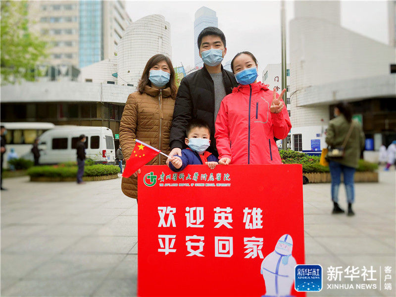 ↑貴州醫(yī)科大學(xué)附屬醫(yī)院護(hù)士葉青(右一)結(jié)束武漢抗疫工作后回到貴陽(yáng)和家人合影留念(資料照片)。新華社發(fā)