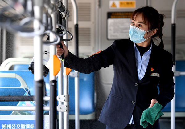 疫情期間,對車輛進(jìn)行消毒成了她每天必須完成的新任務(wù)。扶手、垃圾箱、空調(diào)出風(fēng)口、司機(jī)駕駛座,每一個位置黃菲都清理得很認(rèn)真。