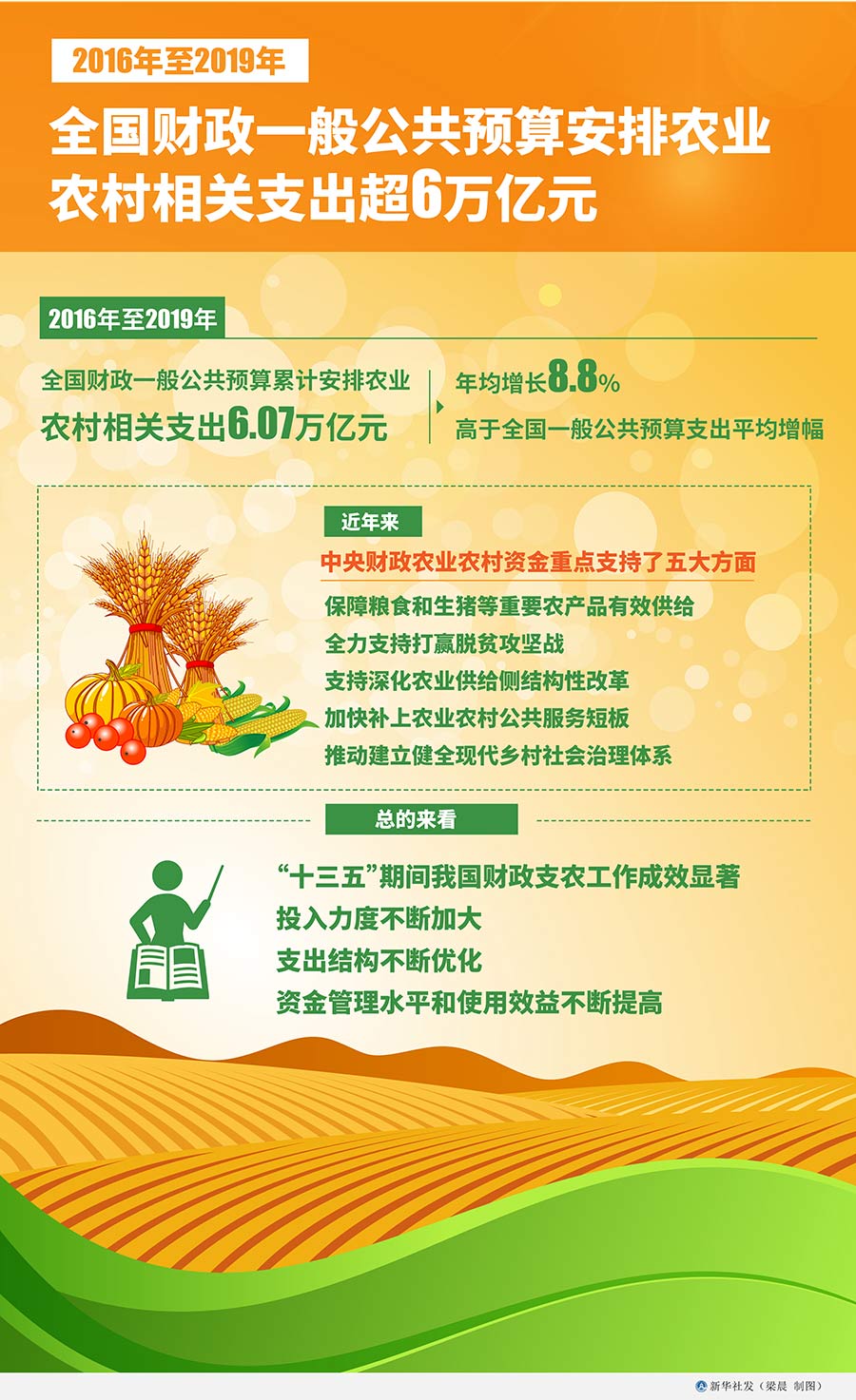 新華社北京12月23日電(記者申鋮)財(cái)政部部長(zhǎng)劉昆23日表示,2016年至2019年,全國(guó)財(cái)政一般公共預(yù)算累計(jì)安排農(nóng)業(yè)農(nóng)村相關(guān)支出6.07萬億元,年均增長(zhǎng)8.8%,高于全國(guó)一般公共預(yù)算支出平均增幅。