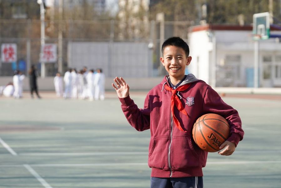 “升入中學后,我最關(guān)心的就是新學校的操場長什么樣?!辈剃涣厍纹さ匦χf,戴口罩的鼻梁上因為打球擦破了皮。從四歲起摸球,他每周參加籃球訓練,是個熱愛運動的少年。