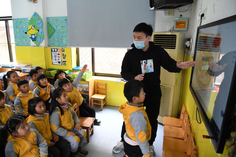 ??12月18日,孫浩在合肥鋼鐵集團(tuán)第一幼兒園給孩子們上課。