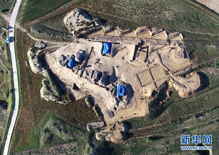 內(nèi)蒙古后城咀龍山時(shí)代石城發(fā)掘區(qū)航拍圖。新華社發(fā)(國家文物局供圖)