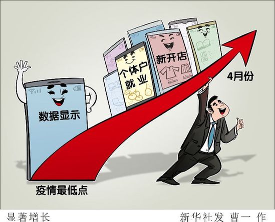 數(shù)據(jù)顯示,4月份與疫情最低點(diǎn)2月1日當(dāng)周相比,每周新增個(gè)體戶小店數(shù)量平均提高79%,每周新增小店的交易金額平均增長305%。在2月上旬,活躍的個(gè)體戶小店減少了40.4%,營業(yè)額降低了52.4%。(新華社發(fā) 曹一 作)