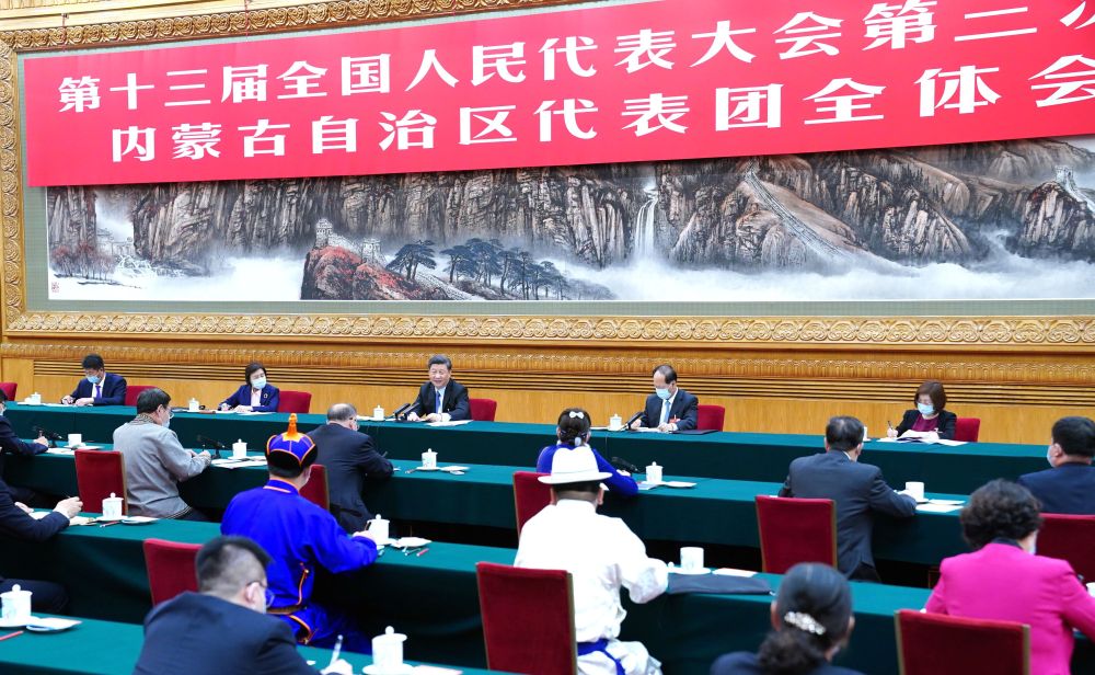 2020年5月22日,習(xí)近平參加十三屆全國人大三次會議內(nèi)蒙古代表團的審議。新華社記者 謝環(huán)馳 攝