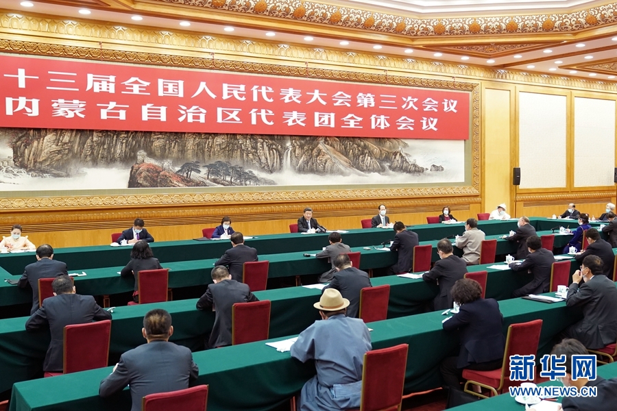 5月22日,中共中央總書(shū)記、國(guó)家主席、中央軍委主席習(xí)近平參加十三屆全國(guó)人大三次會(huì)議內(nèi)蒙古代表團(tuán)的審議。 新華社記者 鞠鵬 攝