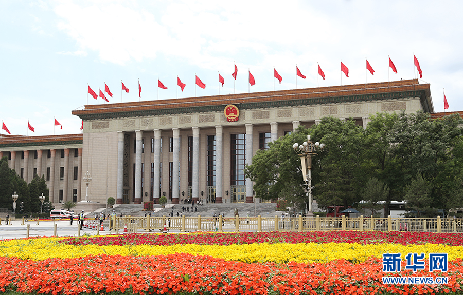 5月25日下午,第十三屆全國人民代表大會第三次會議在人民大會堂舉行第二次全體會議。新華網(wǎng)進行現(xiàn)場直播。圖為人民大會堂外景。新華網(wǎng) 翟子赫 攝?