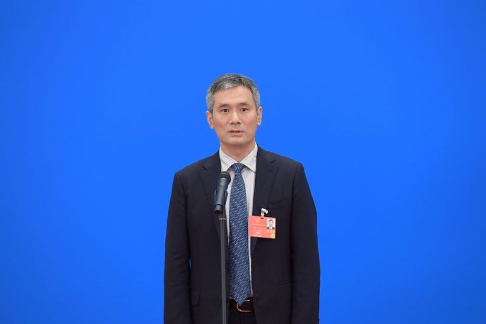 5月22日,第十三屆全國人民代表大會第三次會議舉行首場“代表通道”采訪活動。這是全國人大代表羅杰接受采訪。新華社記者 李賀 攝