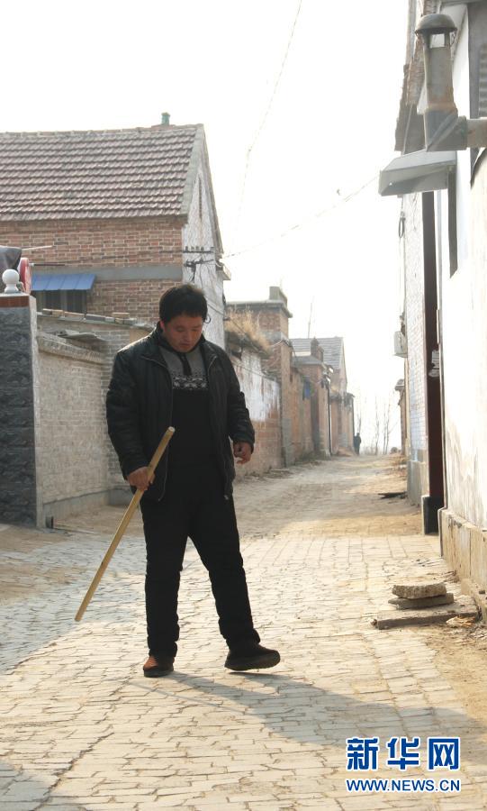 1月3日,在山東省高唐縣清平鎮(zhèn)高寨村,于福強在村內(nèi)行走。新華社記者 陳灝 攝