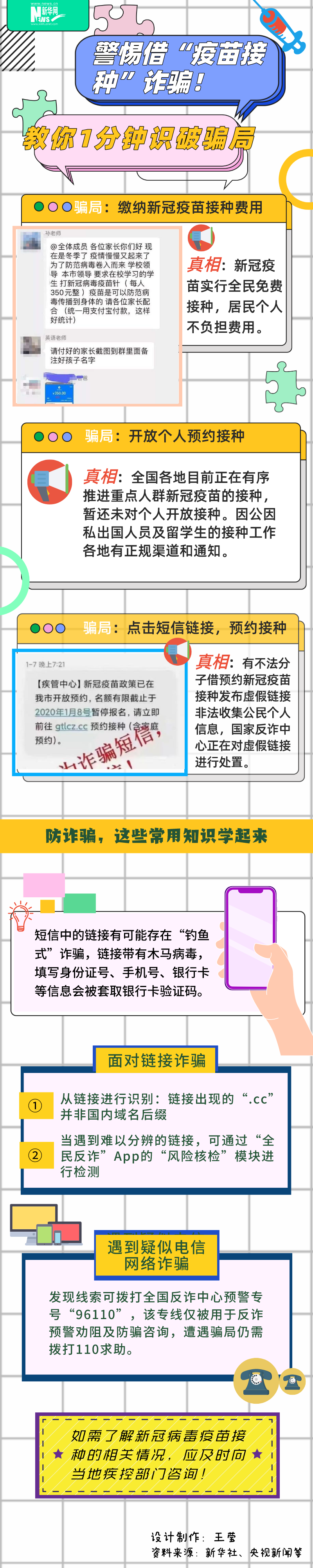 近期,全國多地有序開展新冠病毒疫苗接種,一些不法分子從中嗅到了“機(jī)會”,借疫苗接種設(shè)局實施詐騙,快來識破這些騙局!