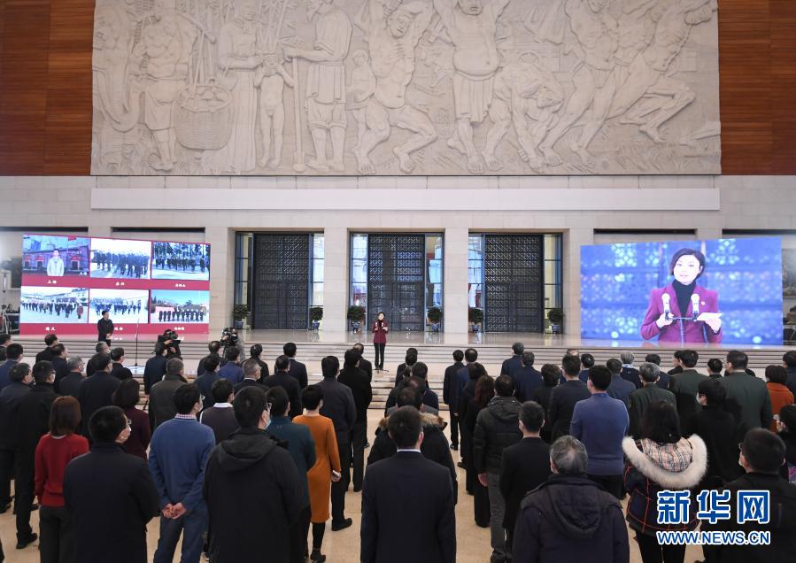 1月18日在北京國(guó)家博物館拍攝的“奮斗百年路 啟航新征程”大型主題采訪活動(dòng)啟動(dòng)儀式現(xiàn)場(chǎng)。新華社記者 申宏 攝