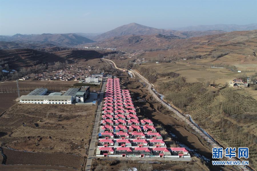 這是2月6日在甘肅省定西市渭源縣元古堆村拍攝的易地扶貧搬遷點(無人機照片)。 新華社記者 馬希平 攝