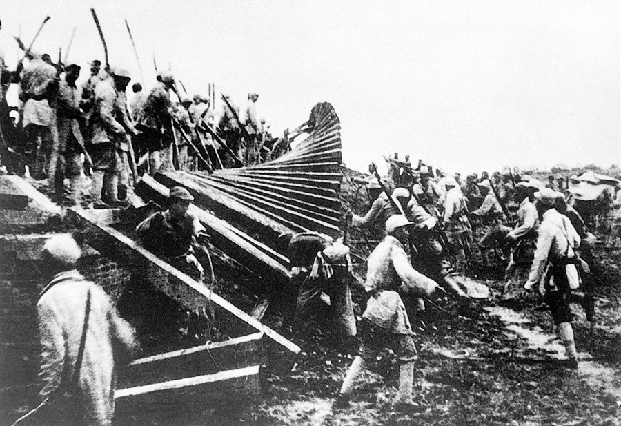 1947年6月30日夜,劉鄧大軍突破國民黨軍隊的黃河防線,挺進(jìn)大別山,揭開我軍戰(zhàn)略進(jìn)攻序幕。新華社圖片