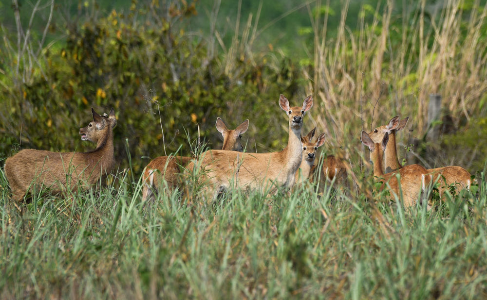 在海南邦溪坡鹿自然保護區(qū),坡鹿在保護區(qū)內(nèi)駐足休息。(新華社記者楊冠宇2020年4月3日攝)