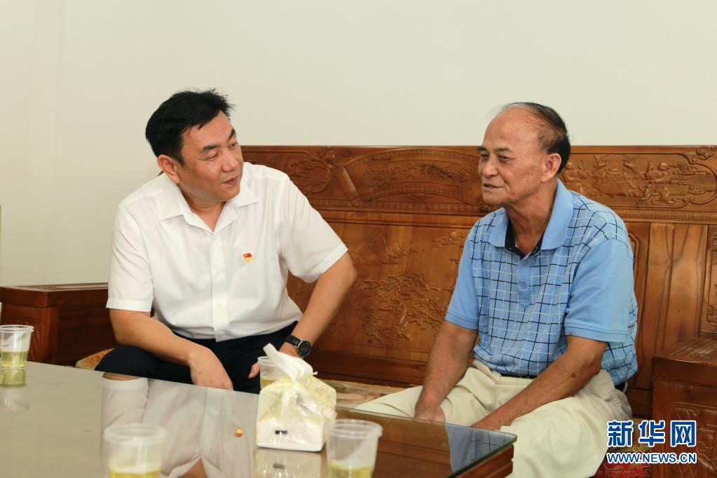 劉光濱(左)到基層慰問老黨員(2019年6月28日攝)。新華社發(fā)