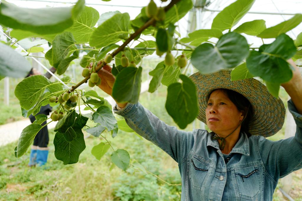 圖為長坪村村民在獼猴桃種植大棚內(nèi)進(jìn)行疏果作業(yè)。(新華社記者劉潺 攝)