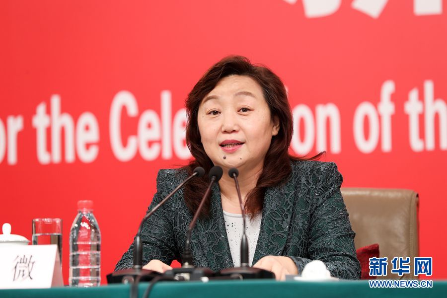 9月25日,慶祝中華人民共和國成立70周年活動(dòng)新聞中心在北京梅地亞中心二層新聞發(fā)布廳舉辦第二場專題集體采訪活動(dòng)。圖為聯(lián)歡活動(dòng)指揮部聯(lián)歡演出部常務(wù)副部長龐微介紹相關(guān)情況。新華網(wǎng)記者 焦鵬 攝