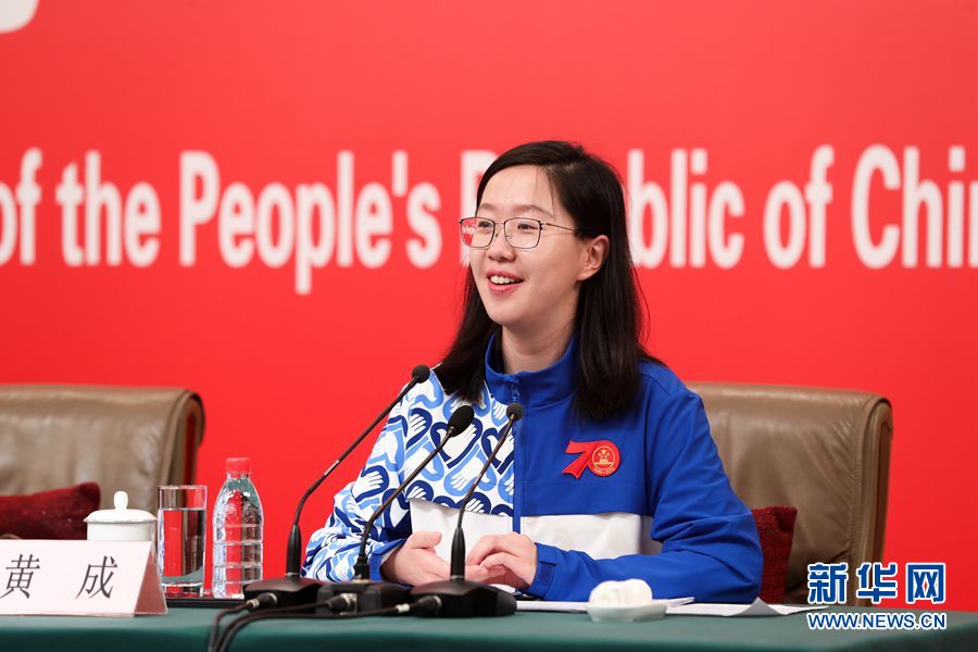 9月25日,慶祝中華人民共和國成立70周年活動新聞中心在北京梅地亞中心二層新聞發(fā)布廳舉辦第二場專題集體采訪活動。圖為志愿者代表、清華大學(xué)經(jīng)濟管理學(xué)院四年級博士生黃成介紹相關(guān)情況。新華網(wǎng)記者 焦鵬 攝