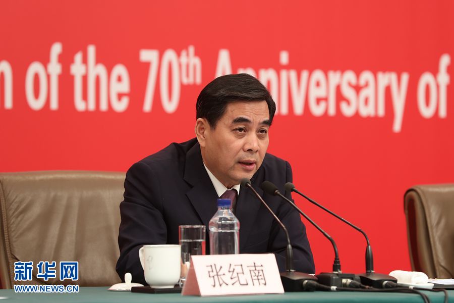 9月26日,慶祝中華人民共和國(guó)成立70周年活動(dòng)新聞中心在北京梅地亞中心二層新聞發(fā)布廳舉辦第二場(chǎng)新聞發(fā)布會(huì)。圖為人力資源和社會(huì)保障部部長(zhǎng)張紀(jì)南介紹相關(guān)情況。新華網(wǎng)記者 郭小天 攝