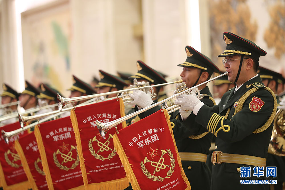 ??? 9月29日上午10時,中華人民共和國國家勛章和國家榮譽稱號頒授儀式在人民大會堂隆重舉行。圖為頒授儀式現(xiàn)場的中國人民解放軍軍樂團。新華網 陳杰 攝