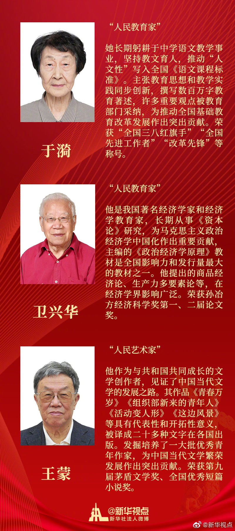 南仁東、董建華、于漪、王蒙、王有德等28人獲授國(guó)家榮譽(yù)稱號(hào)。他們與時(shí)代同行、砥礪奮進(jìn),為共和國(guó)的事業(yè)鞠躬盡瘁,不朽的“鋼鐵精神”將永遠(yuǎn)激勵(lì)著我們。為這些閃亮的名字點(diǎn)贊!轉(zhuǎn)發(fā)傳遞,致敬功勛!