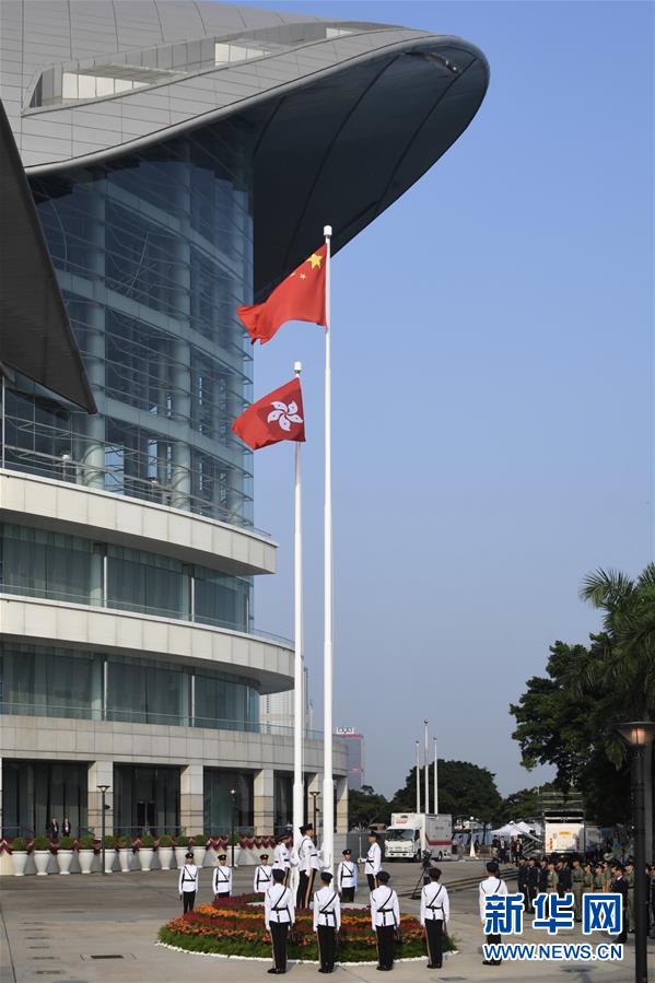 10月1日,香港特區(qū)政府在金紫荊廣場(chǎng)舉行升旗儀式,慶祝中華人民共和國(guó)成立70周年。新華社記者 呂小煒 攝