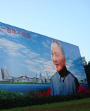 廣場一端的巨幅畫像上,改革開放的總設計師鄧小平身著淺灰色中山裝,堅毅地凝視著前方。畫面左上方寫著:“堅持黨的基本路線一百年不動搖?!?/a>