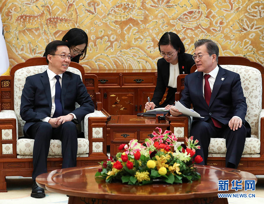 新華社韓國平昌2月9日電(記者駱珺 耿學(xué)鵬)當(dāng)?shù)貢r間2月8日下午,應(yīng)邀出席韓國平昌冬奧會開幕式的習(xí)近平主席特別代表、中共中央政治局常委韓正在首爾青瓦臺會見韓國總統(tǒng)文在寅。