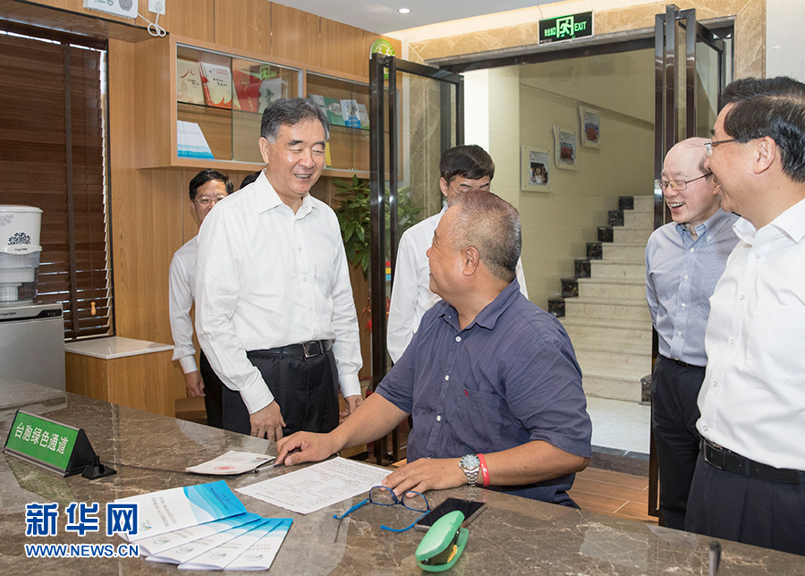 6月6日至7日,中共中央政治局常委、全國政協(xié)主席汪洋在廈門出席第十屆海峽論壇期間,就兩岸經濟文化交流合作情況進行調研。這是6月7日,汪洋在廈門市湖里區(qū)殿前街道興隆社區(qū)便民服務大廳了解臺胞在閩生活工作情況。新華社記者 王曄 攝